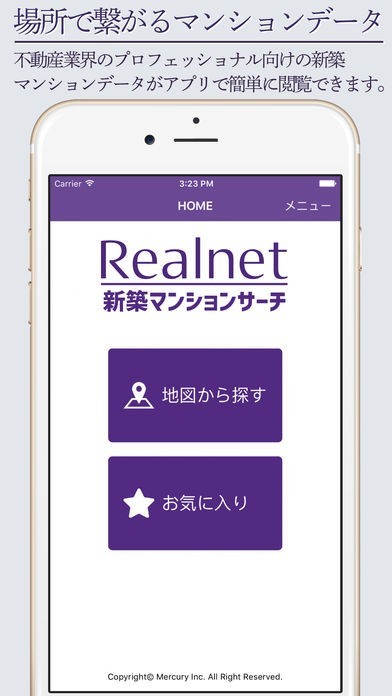 App Storeより引用20年以上 不動産プロフェッショナル向けの新築分譲マンションのマーケティングシステムを提供してきたマーキュリーがお届けするマンションデータをスマートフォン上でカンタンに閲覧できるアプリです。