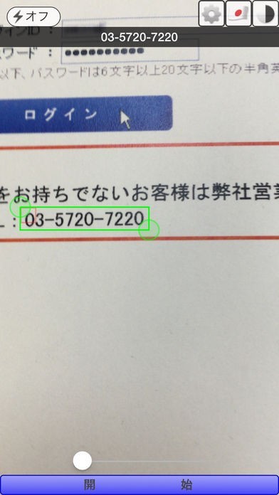 リアルタイムにOCR処理が開始され認識結果が画面に表示される
