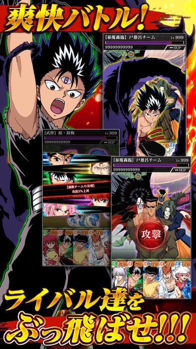 このアプリは、週刊少年ジャンプで連載されていた、主人公の浦飯幽助や、アンバランスな体格差が印象的な、戸愚呂兄弟など、個性的な人物がたくさん出る作品のゲームです。