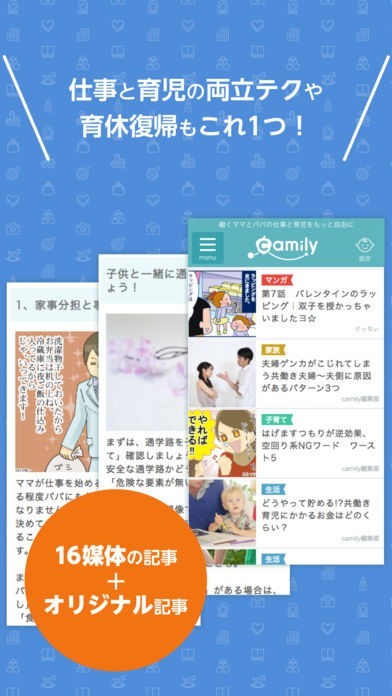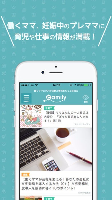 ・働きながら育児をしているママ・パパ、妊娠中のプレママの、仕事と育児の両立を目指すアプリcamily(キャミリー)。仕事や子育て、働くママの使える制度、スキルアップ、育児漫画など、ママのお役立ち情報が満載!