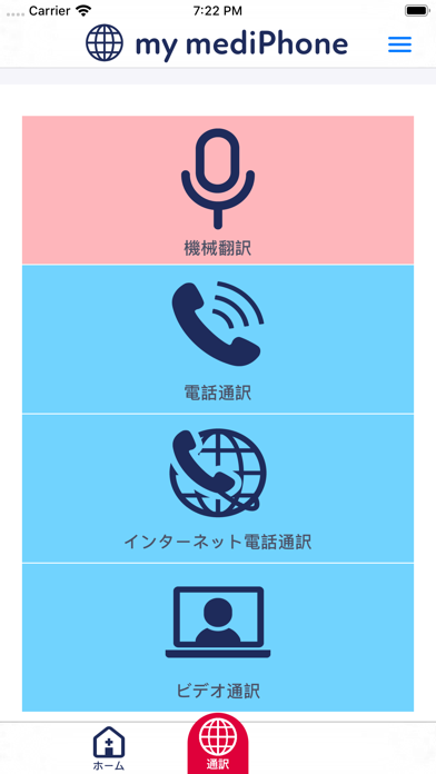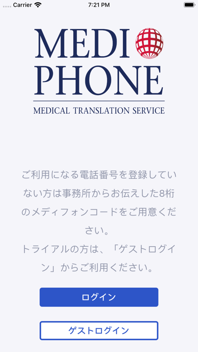 App Storeより引用本アプリはメディフォンの医療通訳をより便利にご利用いただき、医療機関における外国人患者さんの受入れを円滑にするお手伝いをするためのものです。