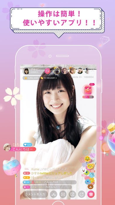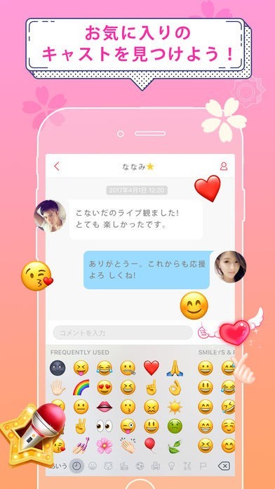 スマートフォンのキーパッドをつかって、画面を見ながら好きなように、自由にコメントを送信することができます。また、ライクを送ることによって、反応を貰うことができます。
