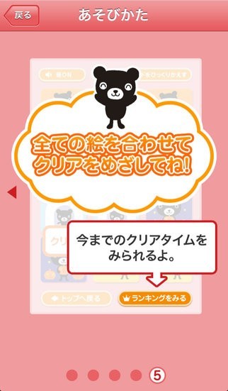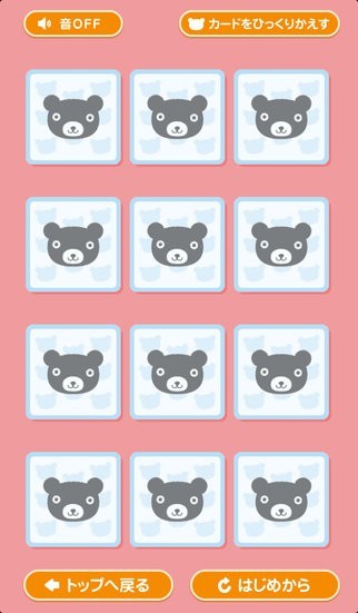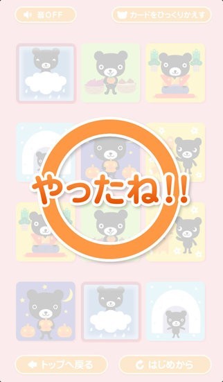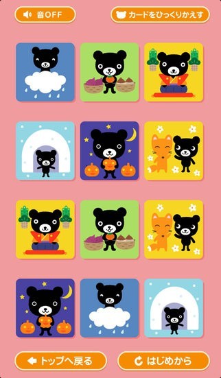 子供のためのBabyKumonのキャラクター「くろくまくん」と一緒にゲームができる! 「くろくまくん 絵あわせゲーム」は、子供でも遊びやすいゲームを収録した教育ゲームアプリです。 同じイラストのカードを探し、タッチで合わせていくだけの簡単操作。 難しい操作を必要としないため、小さな子供でも飽きずに遊ぶことができるようになっています。 絵あわせの他、神経衰弱モードも搭載。 好みのモードで親子でたっぷり遊んでみてはいかがででしょうか!