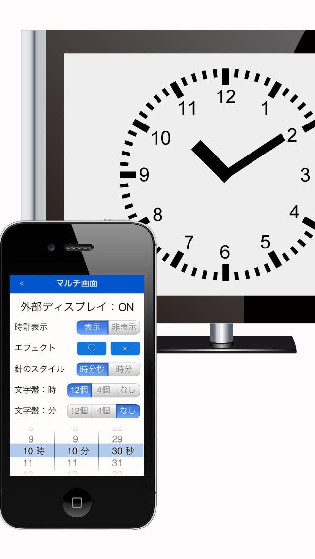 テレビなどのディスプレイにつないで、大きな画面で時計を勉強しよう。親子で一緒に勉強したり、学校の教室などで多くの子供と一緒に勉強できるよ。(お使いのデバイスがApple Digital AVアダプター、またはAirPlay ミラーリング機能をサポートしている必要があります)