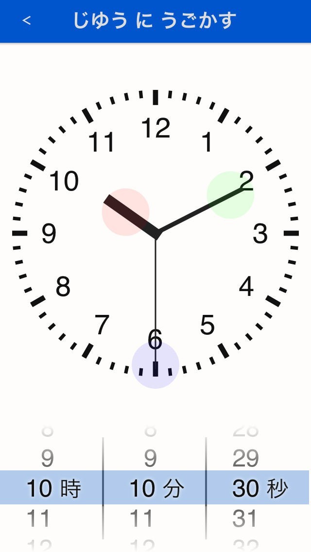 App Storeより引用時計の針や数字を動かして、時計の読み方を勉強しよう。外部ディスプレイを利用すれば、大きな画面でみんなと一緒に勉強できるよ。