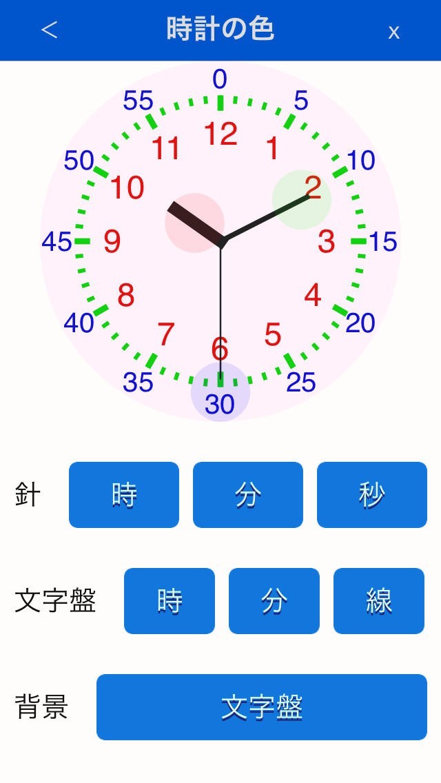 時計の針や数字などの色を、好きな色に変更できるよ。