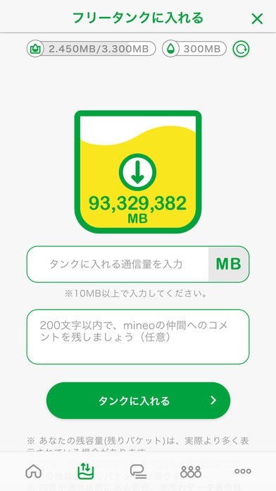 パケットのフリータンクがユーザー同士で使えるため、残容量が少なくなった場合、まずはパケットを購入せずに補充できる点がポイントです。アプリ版のみの機能ではありませんが、自身の残容量がどこでも確認でき、無くなる前に補充できます。