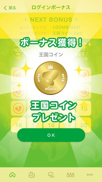 マイネオはコミュニティサイトのマイネ王が開設されており、サービスの情報や王国コインのプレゼント情報などを発信中です。ウィジェットやプッシュ通知の併用により、毎日のログインスタンプゲットにも活用できます。