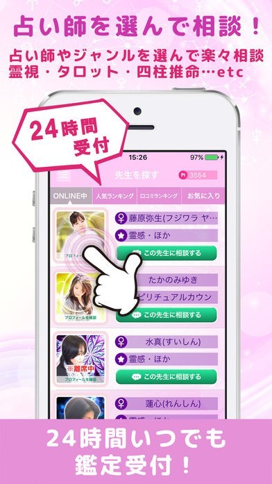 自分の好きな占い師を選んで鑑定してもらう事が出来る