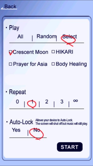 すべてのサウンドを順番に再生するallモードと、4曲をランダムに再生するrandomモード、聴きたいサウンドだけチェックを入れて再生するselectモードの3種類の再生方法から選べます。