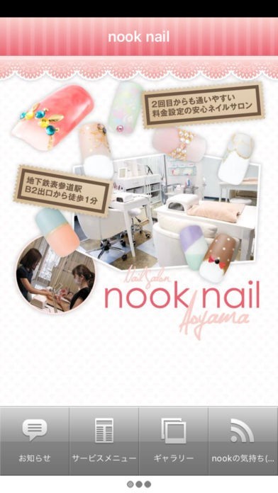 地下鉄表参道駅からすぐのところにあるネイルサロンのさまざまなコンテンツを利用することが出来る公式アプリが「nook nail」です。お店のサービスメニューや料金を確認することができるだけでなく、ネイルカタログも見ることができるようになっているのでお店に行く前にどのネイルにするか迷いながら楽しむことが出来ます。アプリ限定のオリジナルクーポンも配布しているので、よりリーズナブルにネイルを楽しみたい人にもぴったりなアプリとなっています。