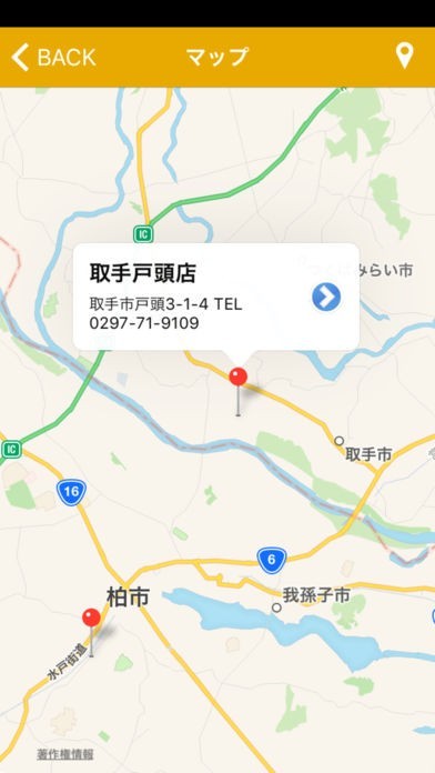 アプリに搭載されているマップ機能を活用すれば現在地から最寄りの店舗までのルートや距離が一目でわかります。外出中に、急にうどんが食べたくなった時に便利な機能です。