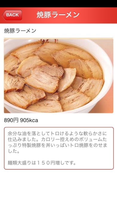 喜多方ラーメンのお店のラーメンの値段やカロリーがわかる