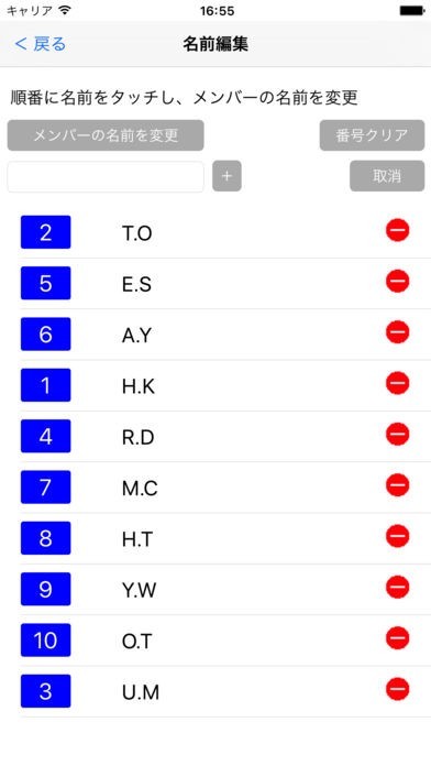 ・1から順番に名前をタッチしてからメンバーの名前を更新でプレイヤー名を置き換えます。