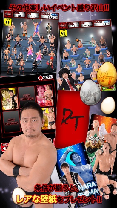 アプリ「DDTにょきにょき / Professional Wrestling Dramatic Dream Team」では、タマゴから人気プロレス団体「DDTプロレスリング」を育ててコレクションするという、個性派すぎる放置型育成ゲームを楽しむことができます。選手を集めていけば、このアプリでしかダウンロードできないオリジナルの選手画像入り壁紙をダウンロードすることも可能ですし、選手たちのボイスも多数収録されているので、プレイするほどファンにはたまらないコンテンツをどんどんゲットできますよ。また、タマゴから生まれる選手はノーマルとレアの2パターン楽しめます。