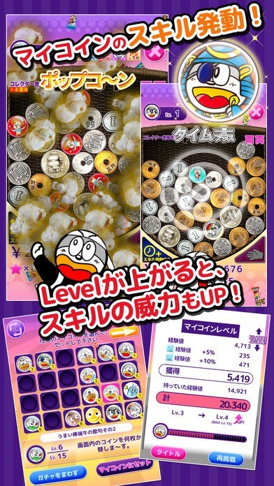 ・マイコインのスキルは経験値によりレベルアップし、レベルアップするとスキルの威力が増します。