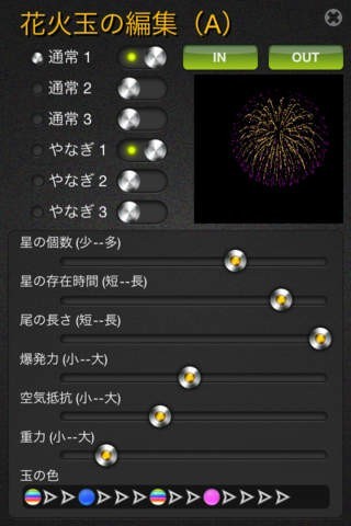 花火が昔から好きという学生であっても、職人以外の一般人が開花時のデザインを行う機会は無いに等しいです。そんな不可能を疑似体験にて可能にしたのがカスタマイズ機能で「もしこのような設計にしたら」という試作が実現します。