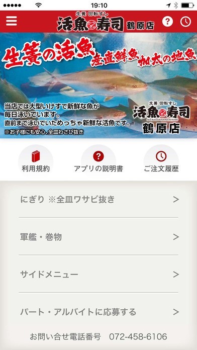 App Storeより引用生簀回転すし活魚寿司 鶴原店(泉佐野市鶴原)のお持ち帰り専用注文アプリです。