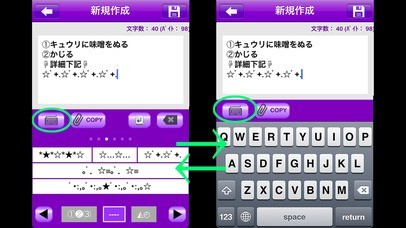 - カスタムしたキーボードで書いたテキストも、投稿/ダウンロードできます。アスキーアート・サンプル書式など、便利に楽しくお使いください。