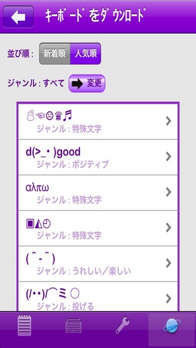 - 投稿されたキーボードは、ジャンル別に検索できます。投稿する際には、あなたがジャンルを選べます。