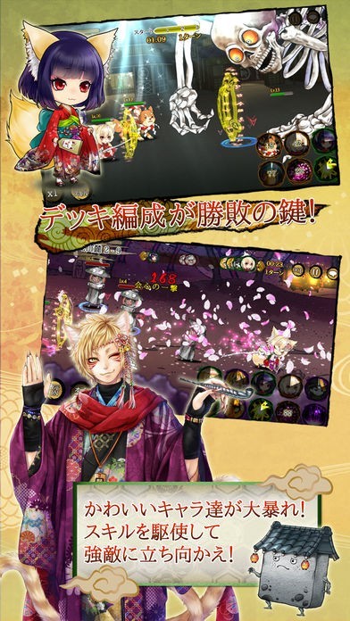 ■ かわいい妖怪たちが大暴れ!必殺技を駆使し、華麗に敵をなぎ倒せ!