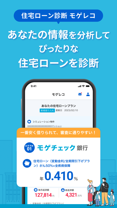複雑で面倒な住宅ローン選びも、気になる物件のローンシミュレーションも、モゲチェックならアプリ1つでお得にスムーズに、そして無料で進められます。