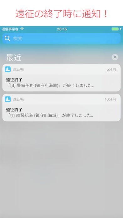 終了時間になると通知機能で遠征終了を教えてくれます。