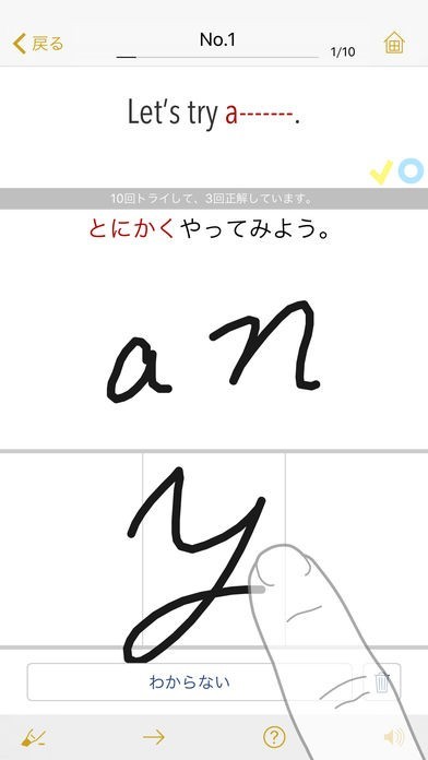 穴埋めテストの回答方法は、キーボードをタップする方式と手書き方式の2つから選択することができます。タップ方式は手軽に勉強したい時に、手書き方式は覚えた単語を定着させたい時に便利です。
