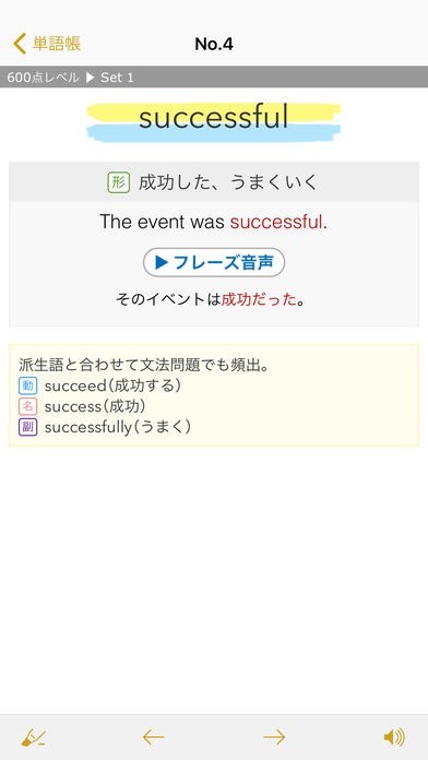 名詞、形容詞などの派生語も同時に覚えられるので、試験勉強の効率が上がる!