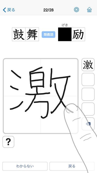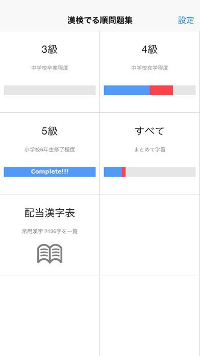 App Storeより引用本製品は、旺文社の漢字検定問題集「分野別 漢検でる順問題集(新装四訂版)」の3級、4級、5級を収録した漢検学習アプリです。