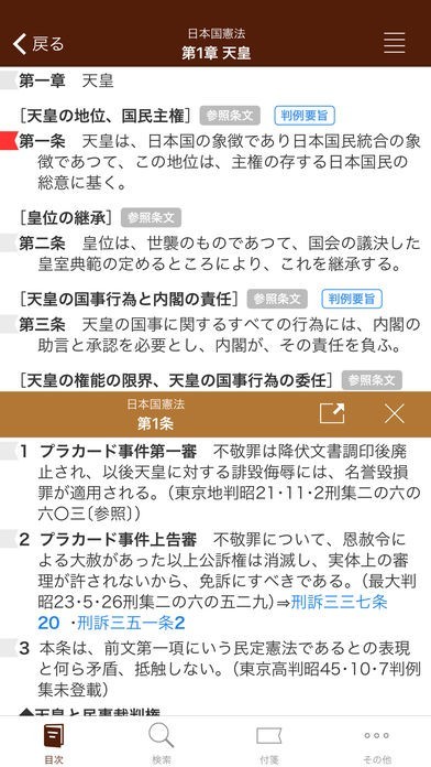・2014年版のiPadのみに搭載していた機能で、2014年版ではポップオーバーでプレビューを表示していましたが、それでは条文本文と見比べられないので画面下部でプレビューできるように改良しました。