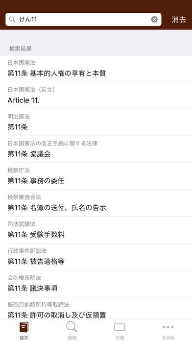 ● 法令検索(目次画面最上部の検索フィールドで素早く目的の条文を表示)