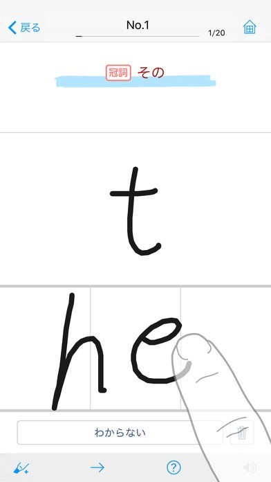 過去の高校入試問題から集めた英単語を出題頻度ごとにレベル分けしているので、自分のレベルにあった英単語から学習することができます。手書き機能もあるので、書いて覚えることもできます。