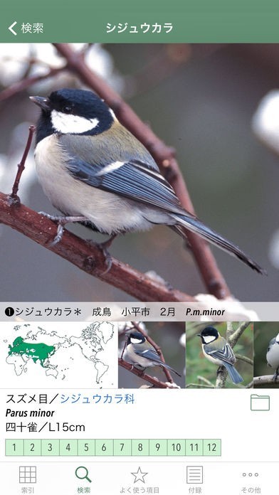 科名検索に対応していて、鳥の分布や特徴を確認出来るのが利点でした。お気に入りフォルダに好きな鳥を追加出来るのも魅力だと思います。
