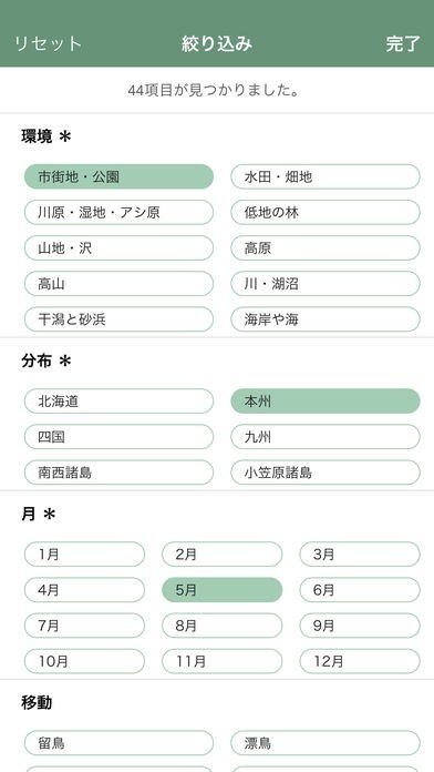絞り込みで鳥の居場所を調べることが出来る。