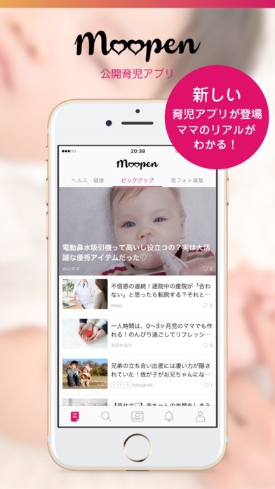 モープン 妊娠~子育て体験談を記事と写真で楽しめる投稿アプリのスクリーンショット