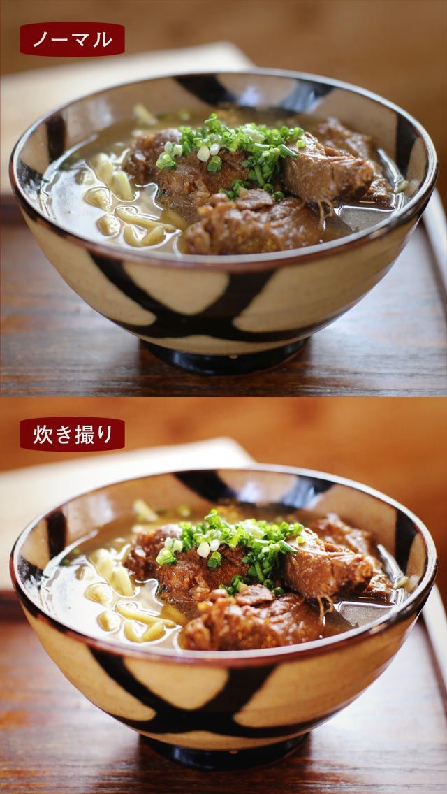 食べ物をとても簡単に美味しく見せる撮影を行うことが出来るアプリ