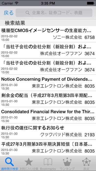スマホ上で適時開示情報がすぐチェックできる優れモノ!