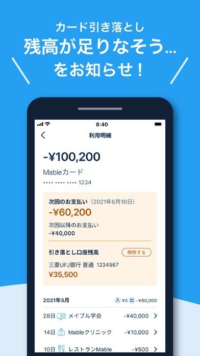 「自動で家計簿 - Mable 銀行口座の残高をまとめて確認」スペック・仕様