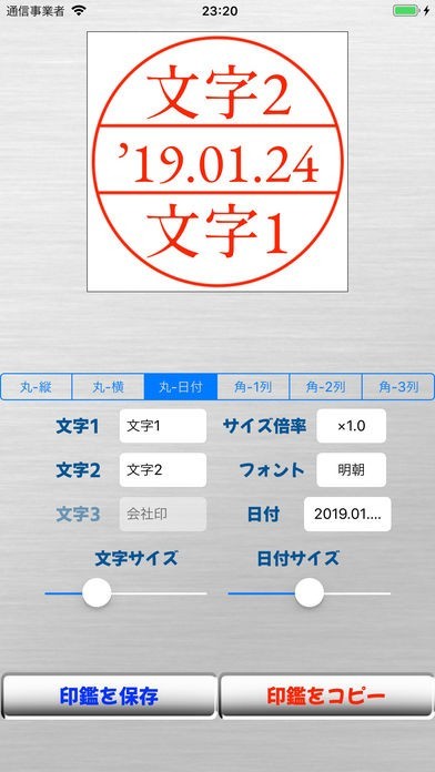 2. 文字の入力、フォント・文字サイズ・印鑑サイズ倍率の設定をする。