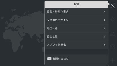 地図上に時計が出てくるので、一目で昼か夜かわかるところが良いです。アナログ表示と24時間表示と自分で選べるものいいです。