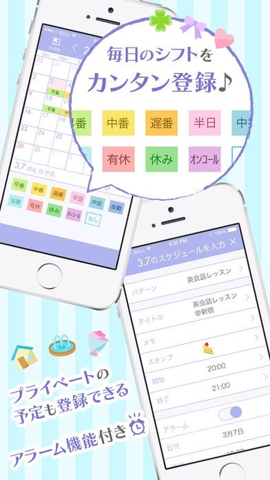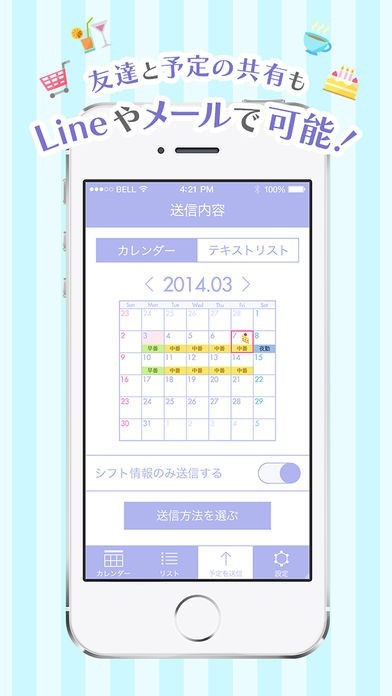 シフト制で勤務する人の強い味方!シフト予定はプリセットのスタンプを選ぶだけの簡単入力!