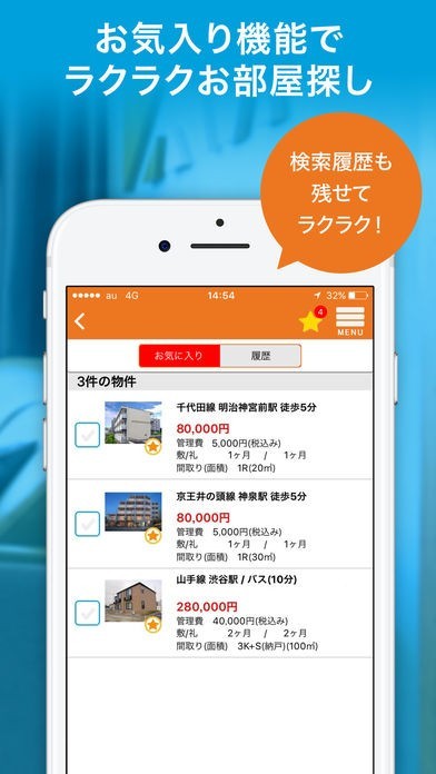 気になった物件を「お気に入り」に登録!部屋の比較も楽々!