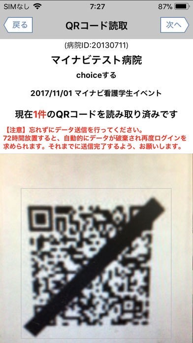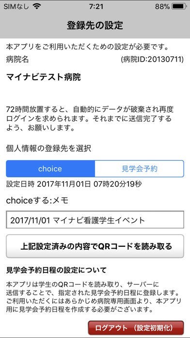 マイナビ看護学生イベント来場者管理アプリのスクリーンショット