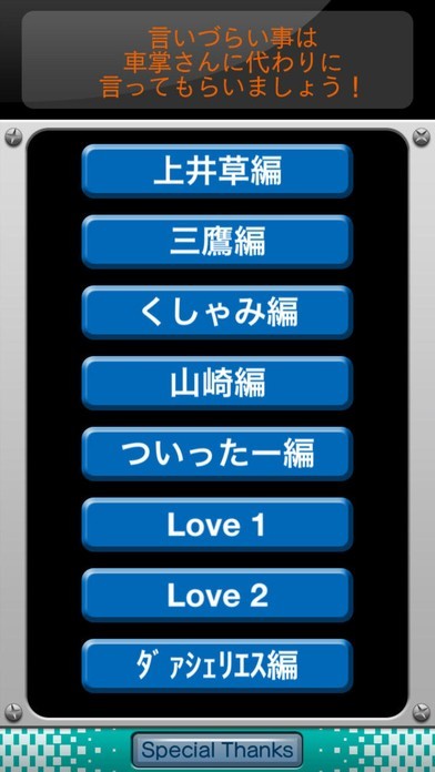 App Storeより引用言いづらい事を車掌に代弁してもらうアプリです。