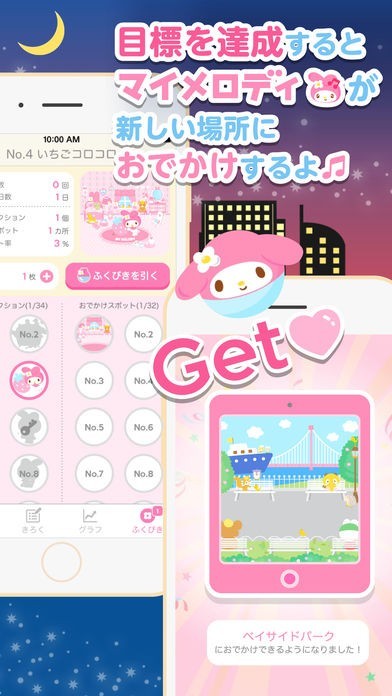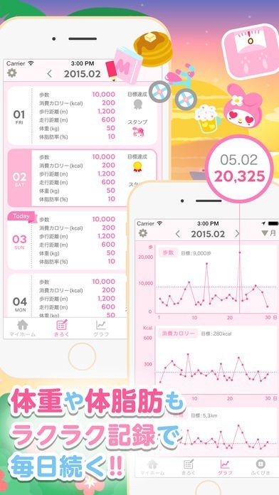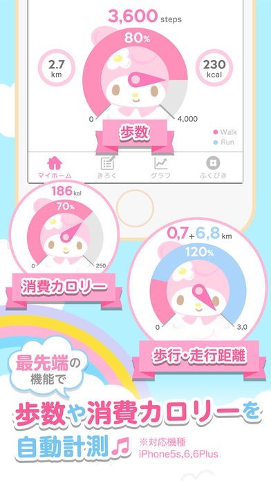可愛いマイメロディと一緒に、歩数やカロリーを管理しながら楽しくダイエットできます。