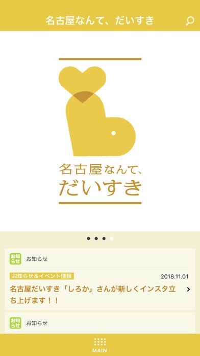 名古屋市公式アプリ「名古屋なんて、だいすき」とは、「なごやサポーターズ」「だいすき写真」「お知らせ&イベント情報」「なごやめし」「観光交通情報」など、様々なコンテンツで名古屋をもっと楽しめるようになる多機能アプリです。