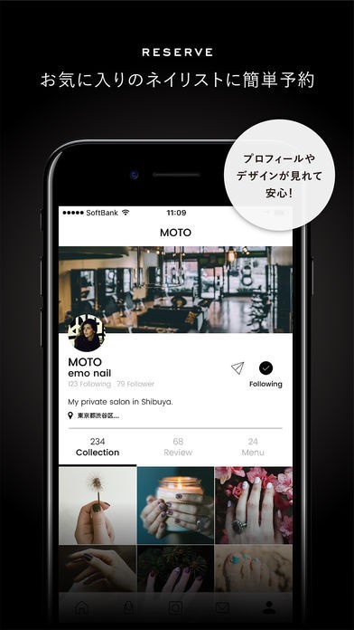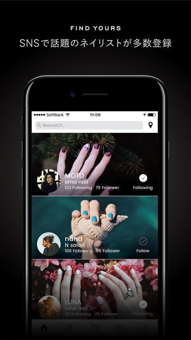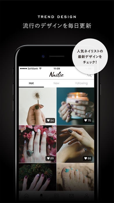 人気ネイリストによるトレンドのネイルデザインを撮影した写真をチェックすることができるようになっているので、最新の流行を見て楽しむことが出来るようになっています。