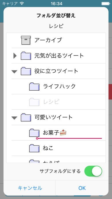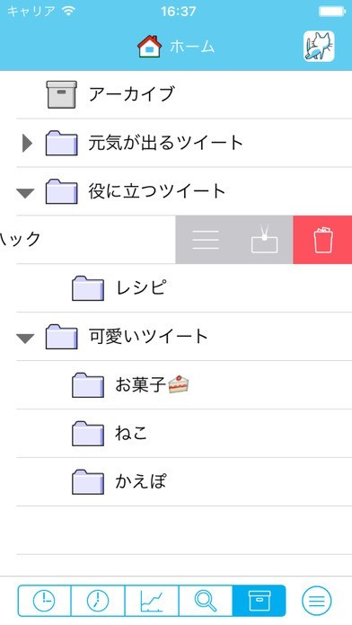 流れてくるツイートをアーカイブで保存できるTwitterクライアントツール「Anju」 アーカイブ機能ではフォルダの作成も可能となっており、さらにサブフォルダとして階層を作ることもできます。 レシピや動物写真、癒されるツイートなどにカテゴリーを分けて、大切なツイートをそれぞれのフォルダに整理していきましょう。 もちろん通常のクライアントツールとしての基本機能も充実。 ツイートボタンをタップするだけで、使いやすいエディターが起動します。