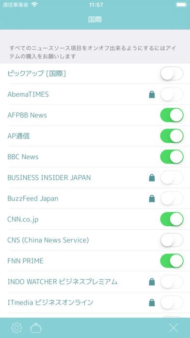 デフォルトでは限られたニュースソースしか利用できませんが、アイテムを購入すると制限を解除できます。あらかじめご了承ください。
